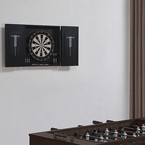 The Vienna dartboard is the perfect finishing touch to the ultimate game room. It includes a handcrafted cabinet with a sleek and simple design in a black finish. Inside the cabinet is a tournament-quality bristle board, 2 scoring chalkboards, and two sets of 3 weighted steel-tipped darts. Product weight:29 lbs,product Width:45.25 inches,product depth:5.25 inches,assembly instructions included,back z-brackets are pre-mounted on the cabinet,finish:black,bristle-board Dart board,comes with 6 darts,Dart board is pre-mounted into the cabinet,material:MDF / bristle board,not for commercial use,school yard style eraser,solid wood front,Vienna Dart board cabinet set