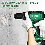 ☞【All Copper Motor & MAX 330 In-lb Torque】KIMO Cordless Drill features an All-Copper Motor that ensures stable operations and is much lighter, cooler and more efficient than aluminum motor drill drivers. Maximum 330 in-lb torque is ideal for drilling through or screwing in wood, metal, and plastic, fulfilling a wide range of needs.