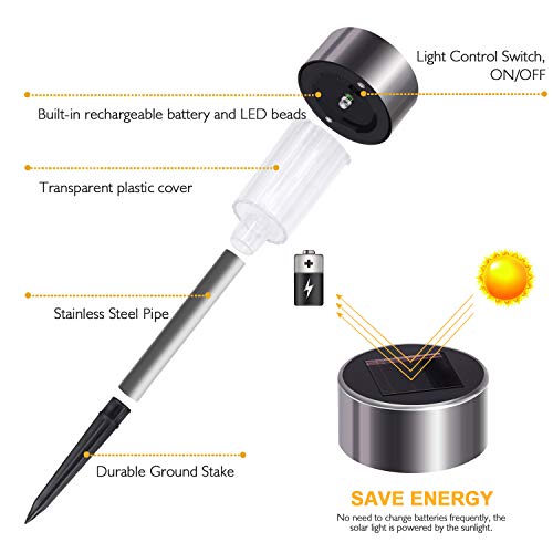 Easy Installation: No tools or wire required. Simply assemble each part together and insert it into soil, unscrew the lamp cap and turn on the light switch, and then it can work normally. Perfect for garden, patio, yard, landscape, driveway, etc.